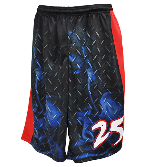 Custom Sublimated Mens Sport Shorts. Our shorts are made from 100% polyester moisture wicking material, making them lightweight and breathable. These shorts are 100% made in the USA. Shorts come with side pockets and a drawstring.