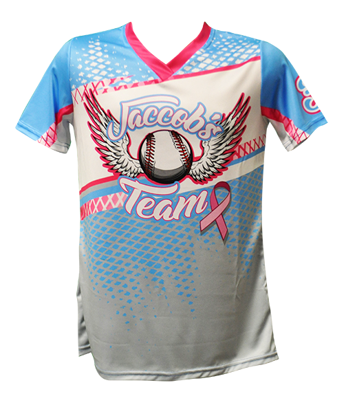 Our custom, sublimated Women’s V-Neck Jersey is a fitted, short sleeve jersey made from 100% polyester moisture wicking material. Full dye jerseys made from wicking material results in a lightweight, breathable fabric. You can order this fast pitch jersey in either soft micro mesh or shiny solar material. This jersey is 100% made in the USA.