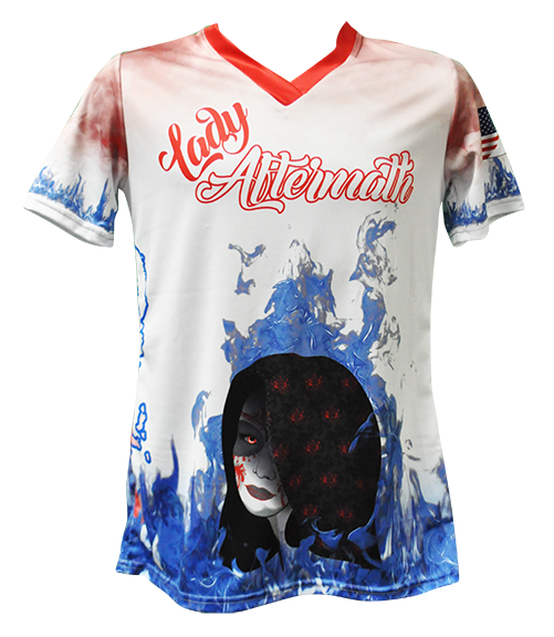 All The Way Live Designs can supply your team with one of our full dye, fitted v-neck women’s jerseys. Designed to be lightweight and breathable, the fabric is made from 100% polyester moisture wicking material and available in both soft micro mesh or shiny solar.